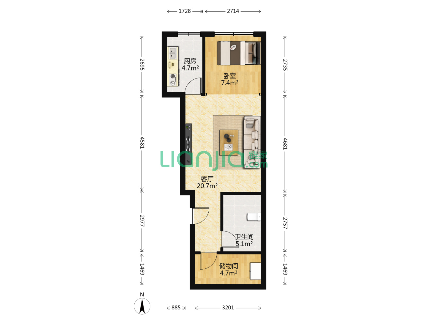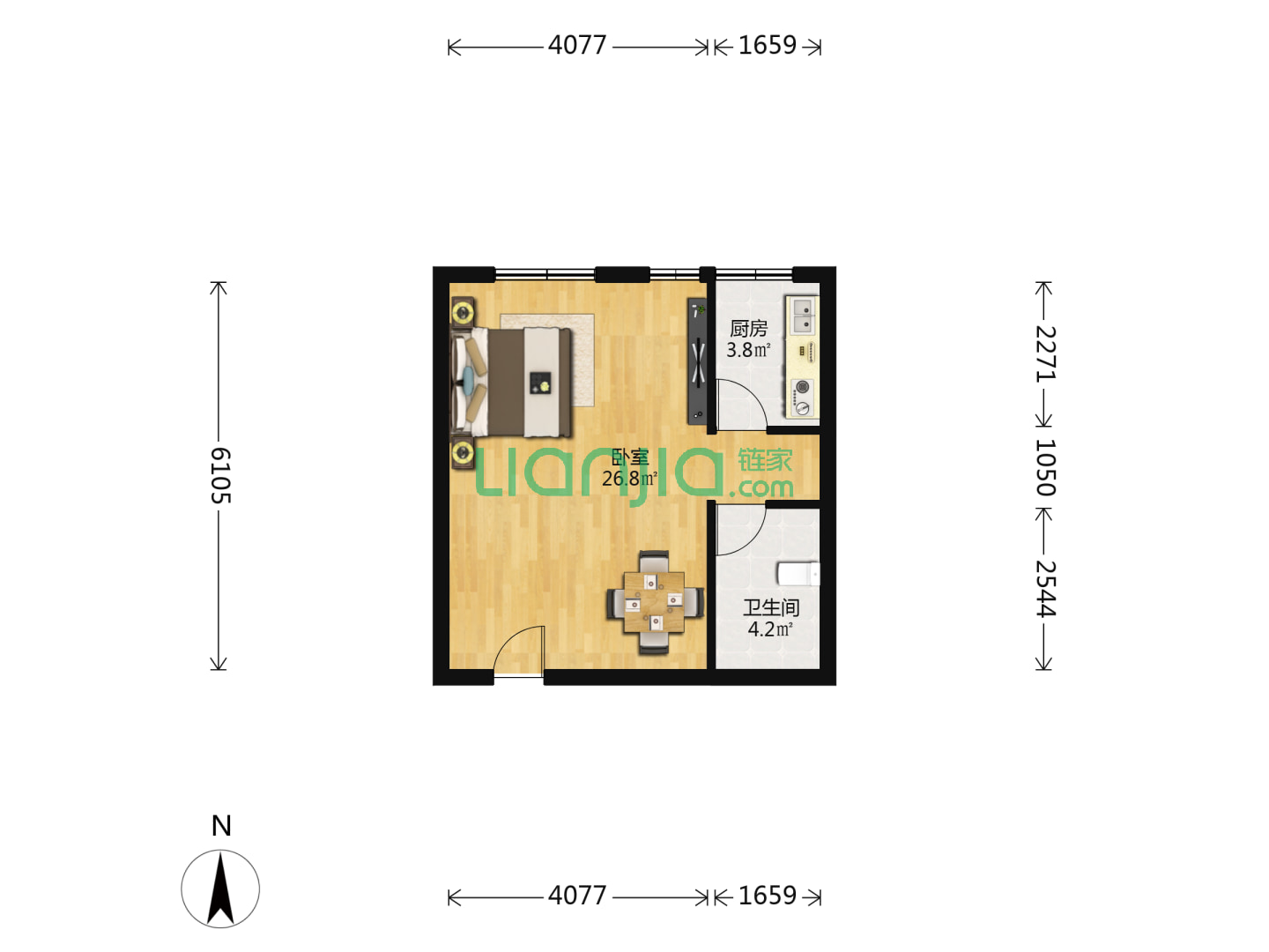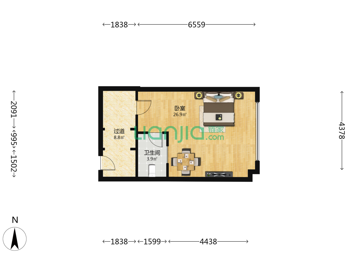 1室1厅1卫 57㎡