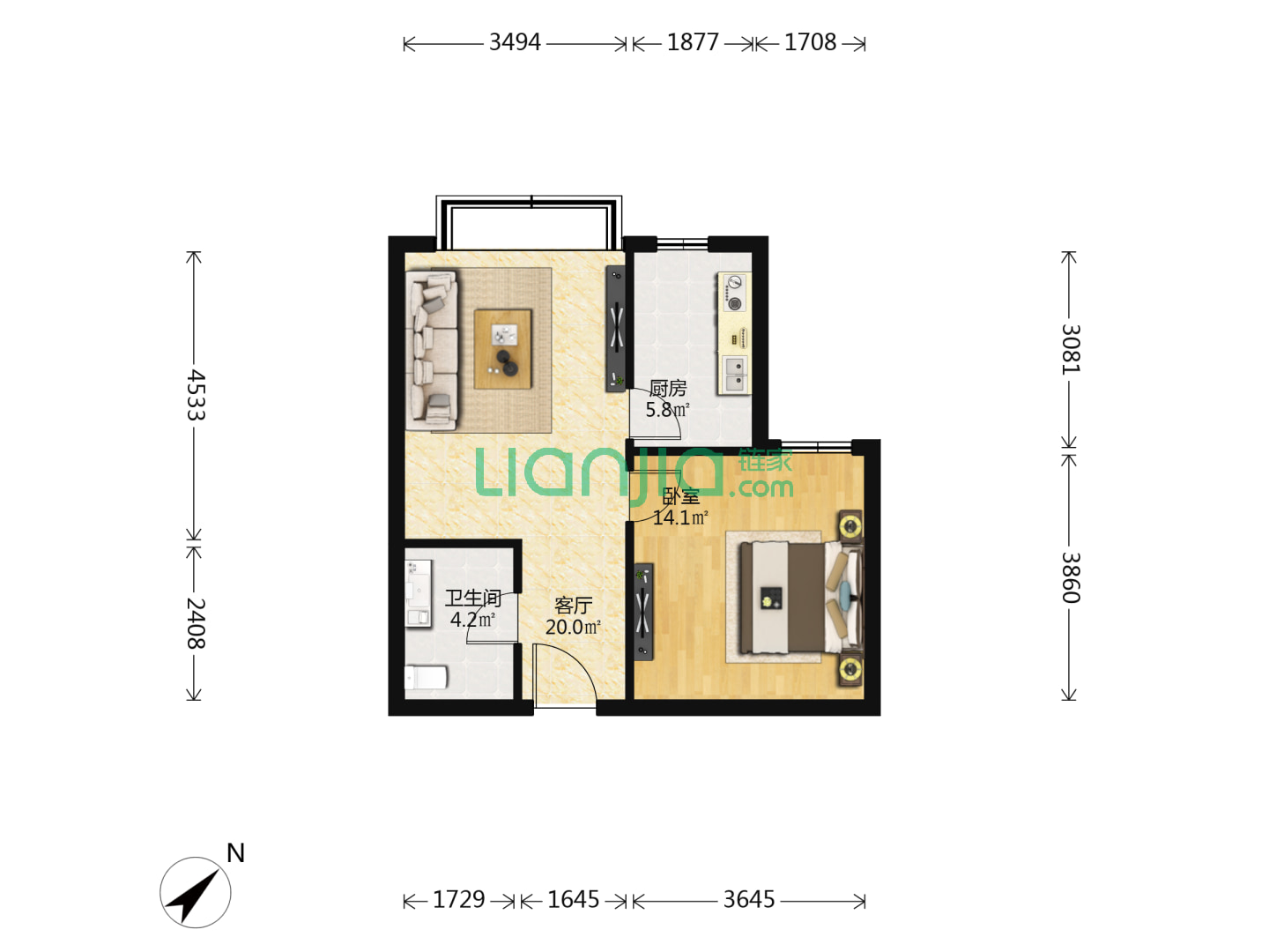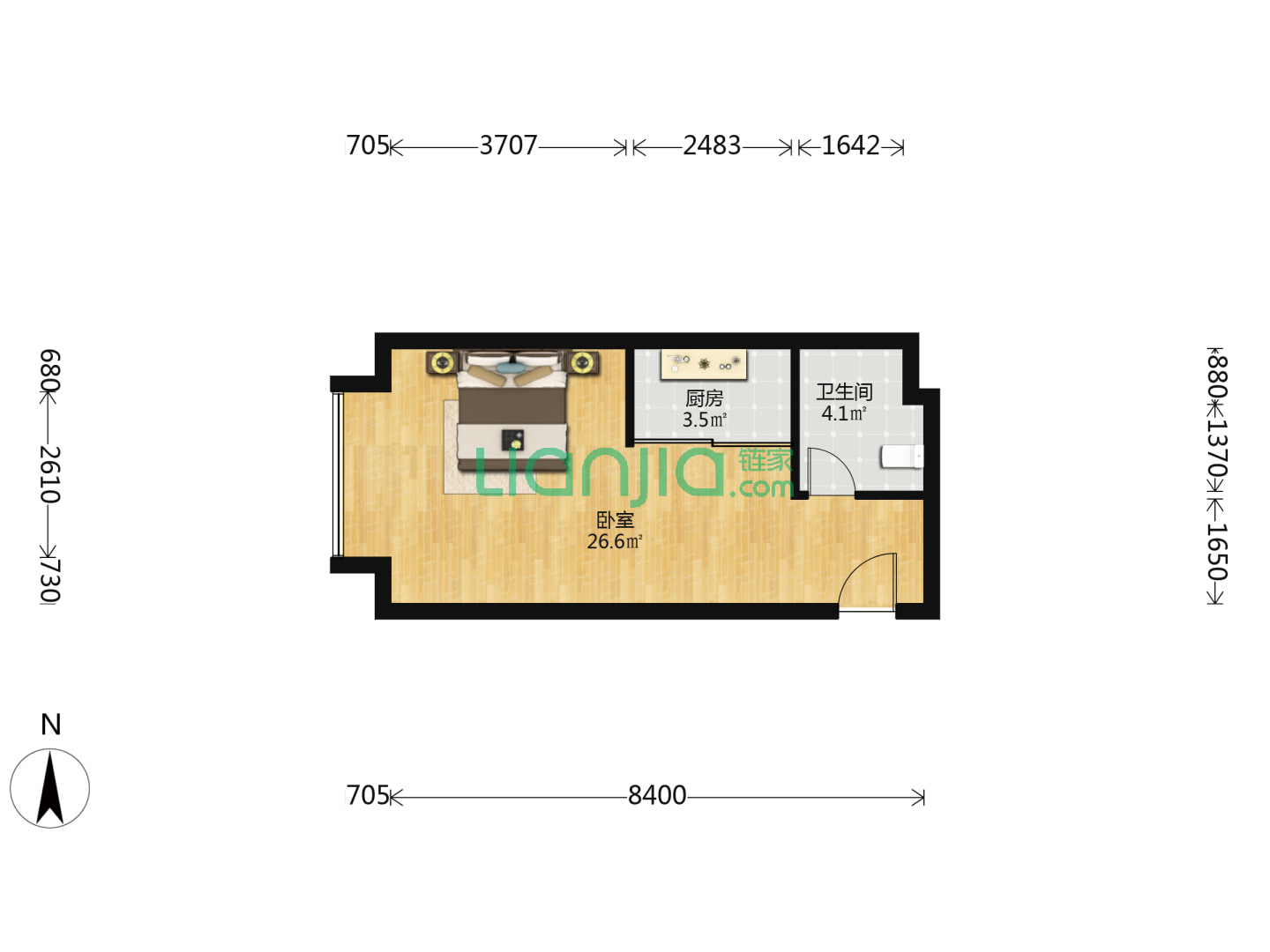 1室1厅1卫 64㎡